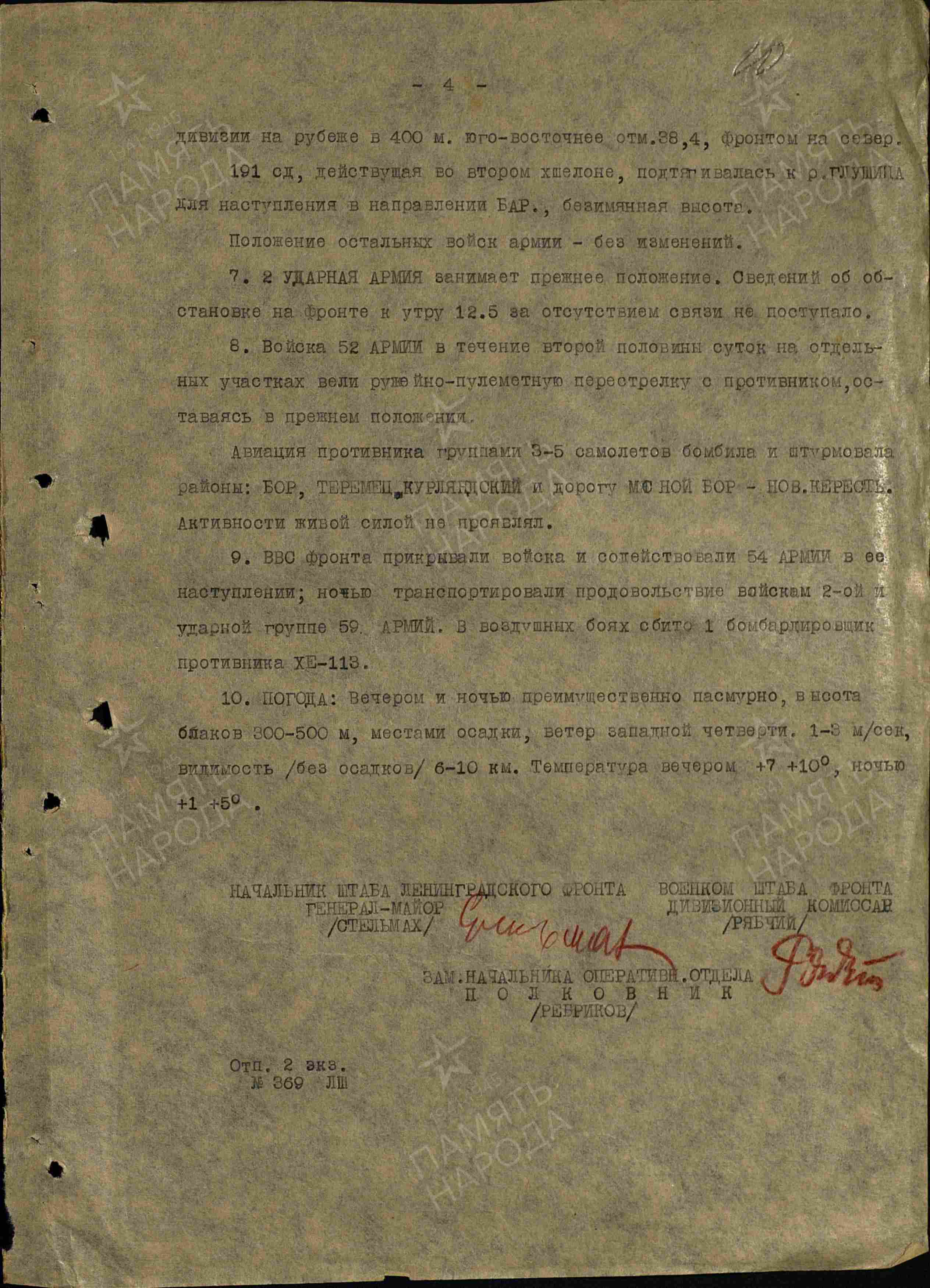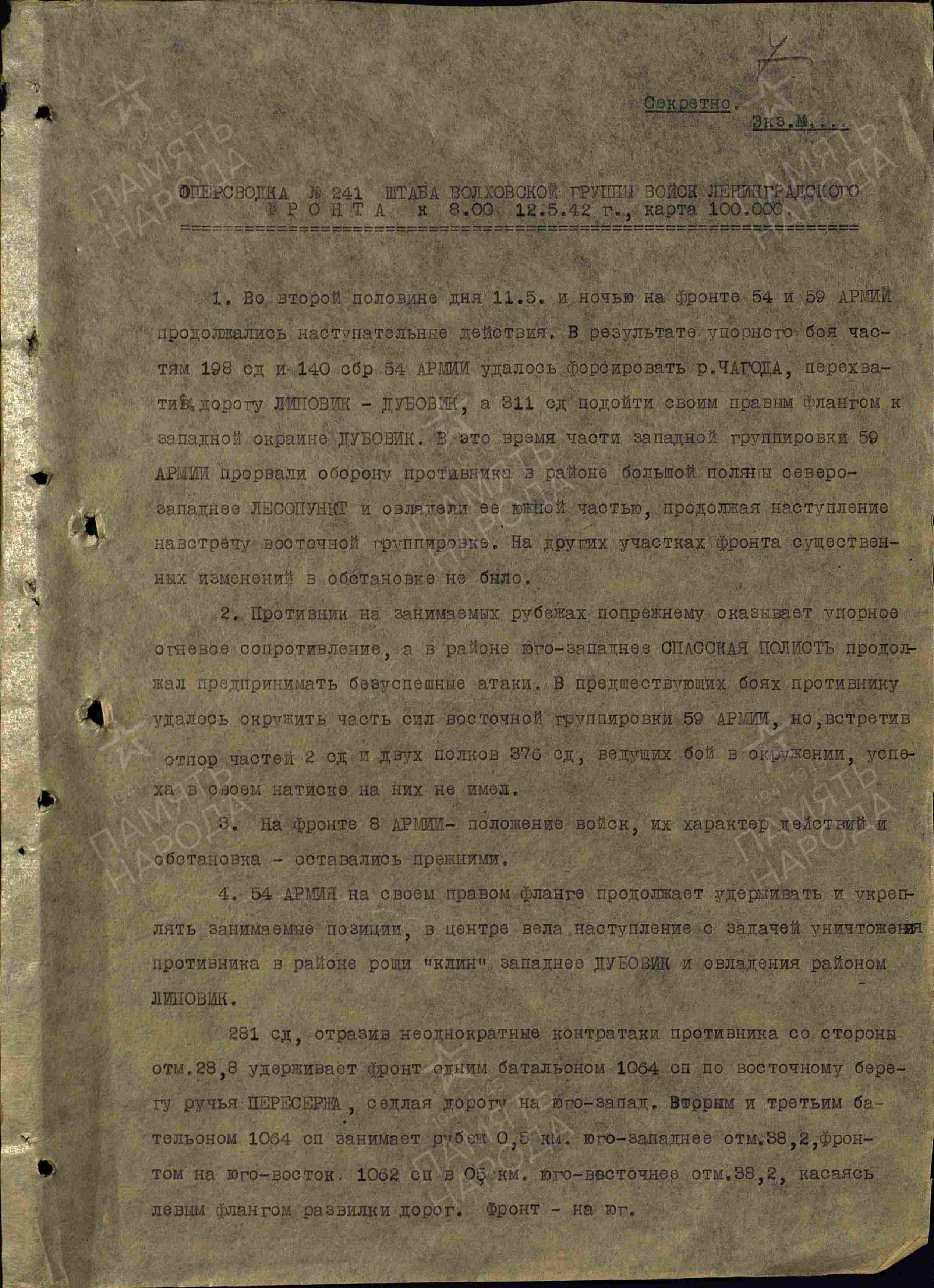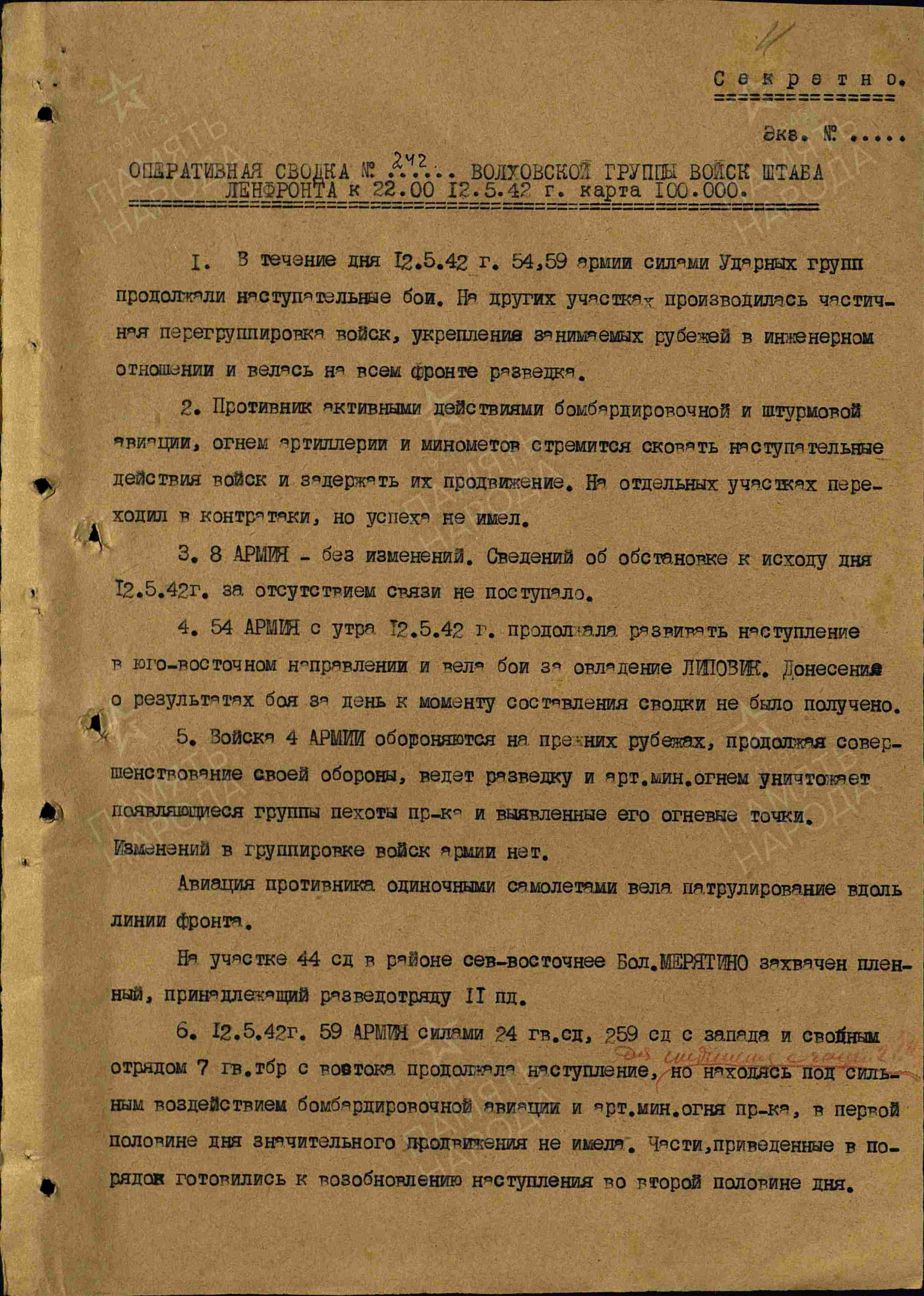 Оперативная сводка штаба ВолхГВ ЛенФ за 12 мая 1942